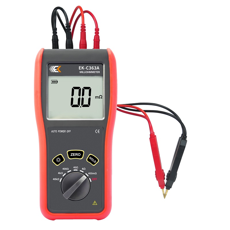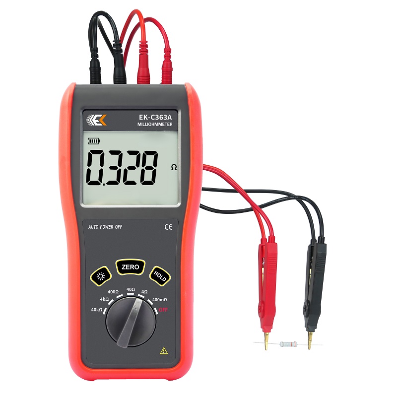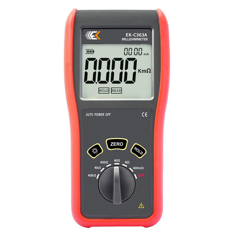 测量档位:400mΩ、4Ω、40Ω、400Ω、4kΩ、40kΩ(6档)