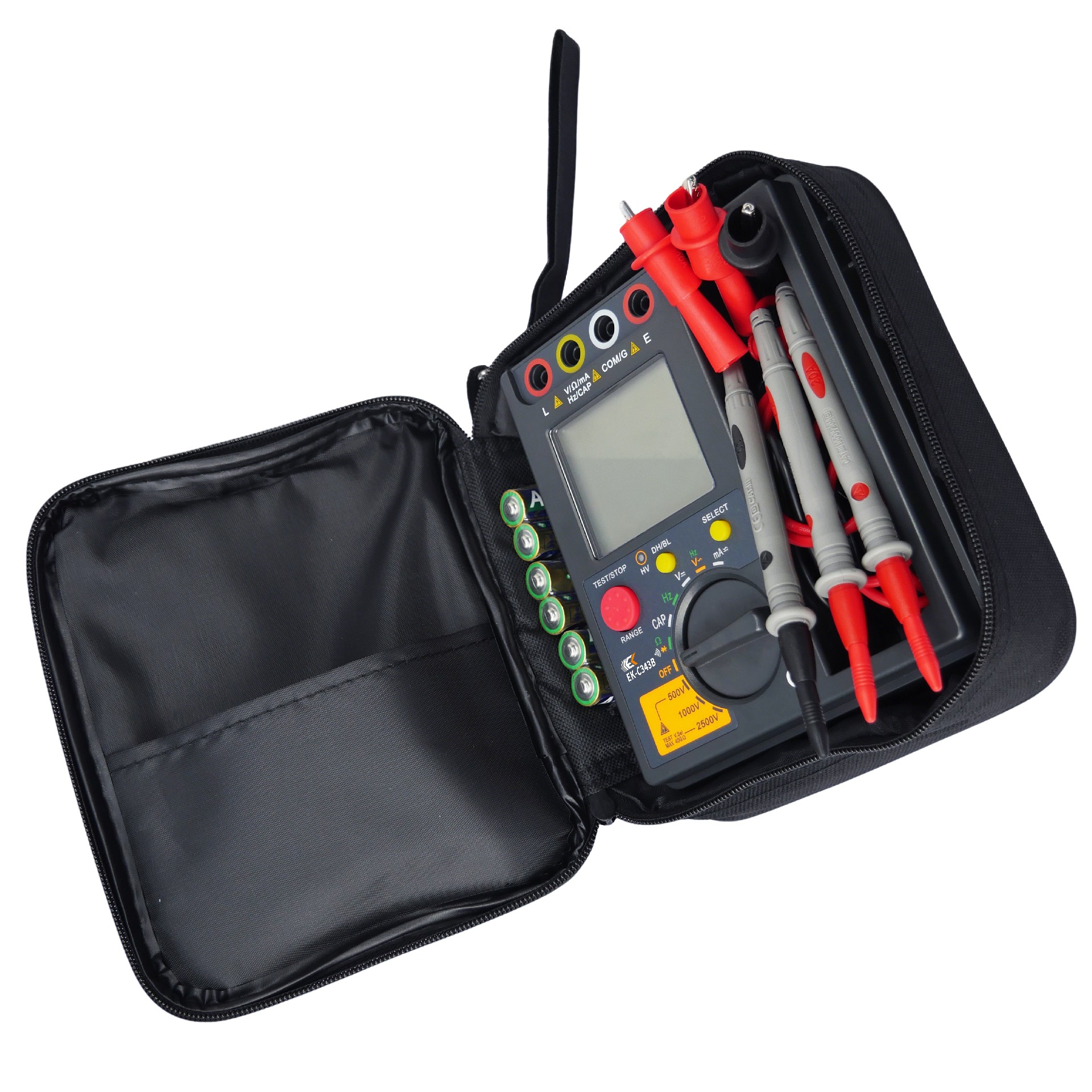随机附件 | 仪表:1件;高压测试表笔:2条红色; 表笔测试线:1条黑色;鳄鱼夹:3个(红色2个/黑色1个); LR6电池:6节;工具包:1件 |