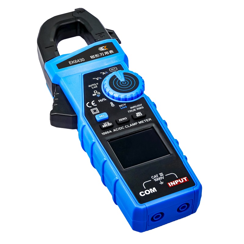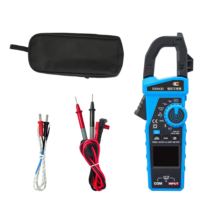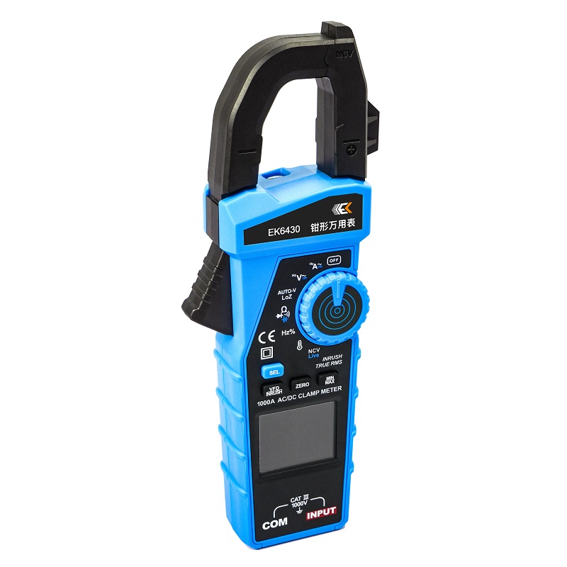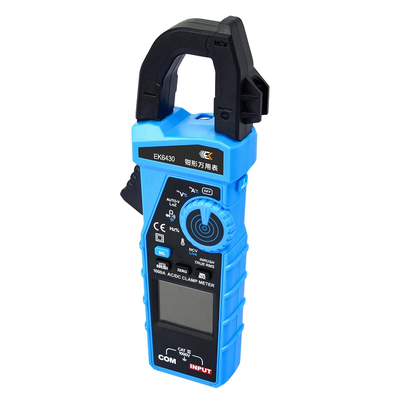 产品功能 用于测量交直流电流、交直流电压、电阻、电容、二极管、线路通断、频率、百分比、温度、NCV、Live以及MAX、MIN、HOLD锁定、INRUSH、VFD、手电筒、自动关机、全量程过载保护、电池电量不足指示等功能。 产品特点 具备低阻抗LOZ交直流电压自动识别功能,具有真有效值测量。 钳形表与万用表的完美组合,采用高性能的新型MCU处理器、携带方便,是电气测量之理想工具。 电流量程AC/DC:1000A,钳口尺寸:Φ30mm,准确测量-50~1000℃的温度测量功能。 |