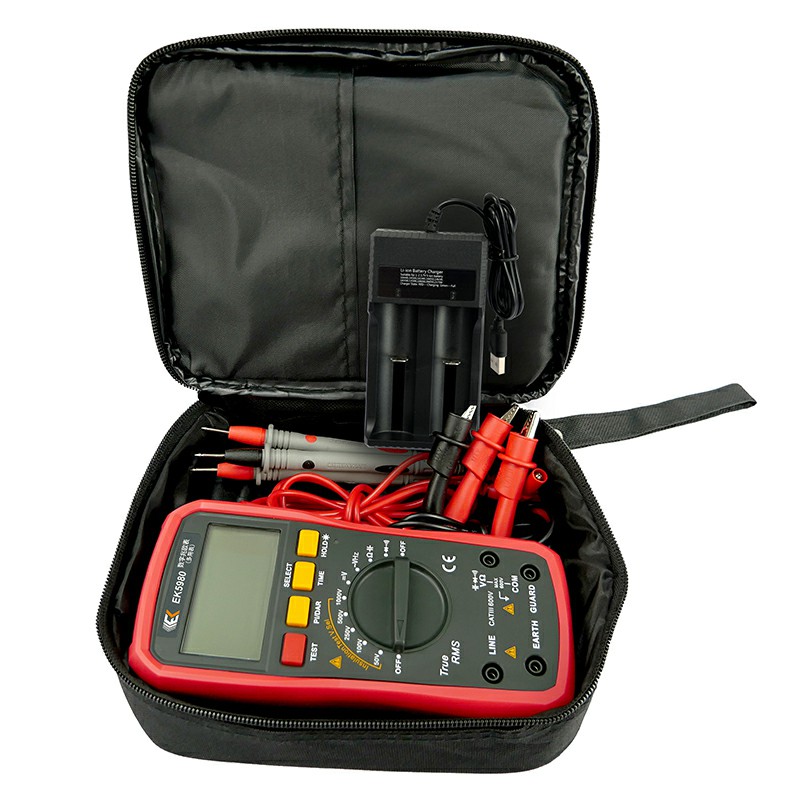 随机附件 | 仪表:1件; 红色表笔测试线:2条;黑色表笔测试线:1条;红色鳄鱼夹:2个;黑色鳄鱼夹:1个; 锂电池:2节;充电转接座:1个;工具包:1个 |
